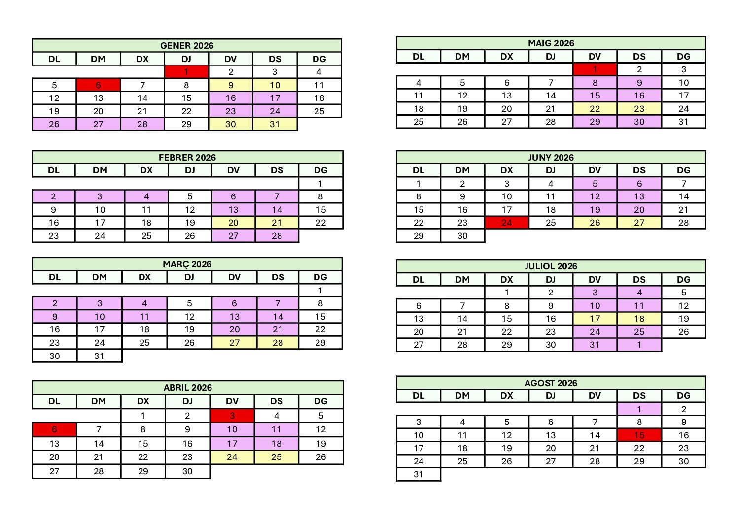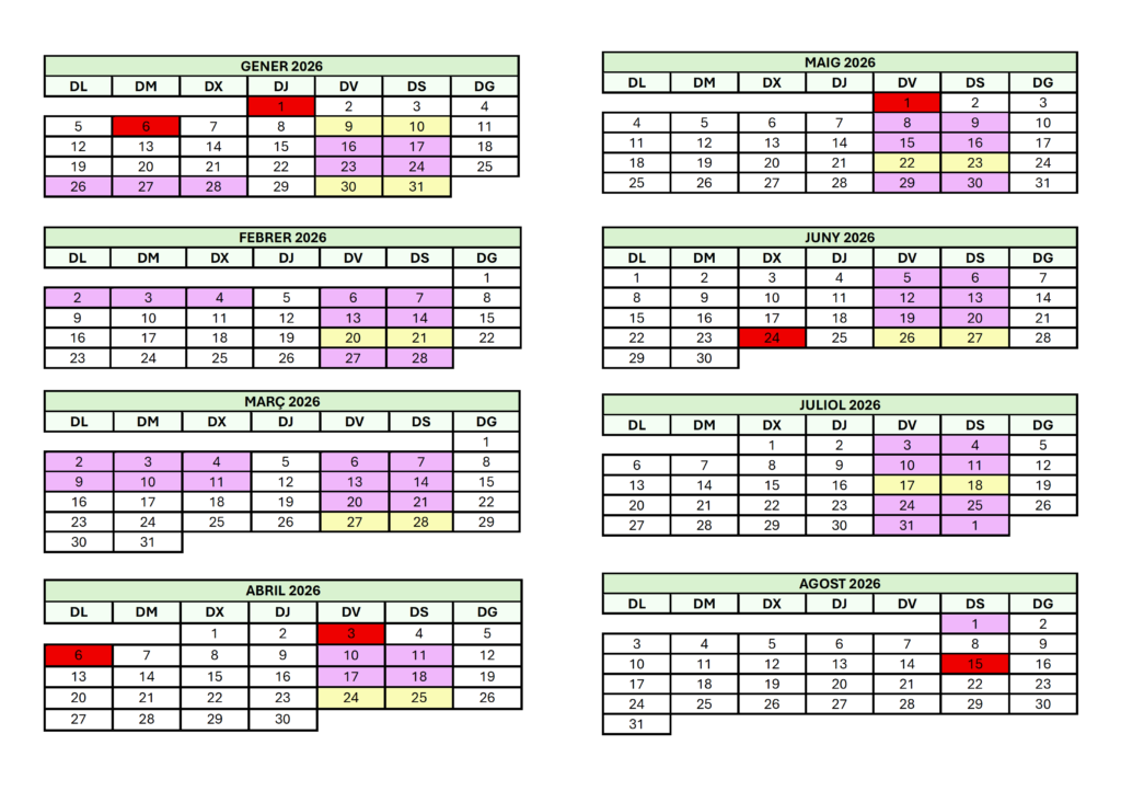 - Dos viernes de 15h a 21h y dos sábados de 8h a 14h